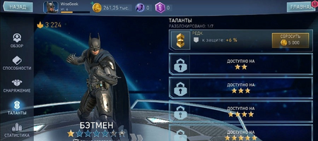 На странице героя можно изучить его характеристики (базовая, нападение и защита). Она улучшается по мере повышения звездного рейтинга, уровня героя, изменения его талантов или эффектов снаряжения.