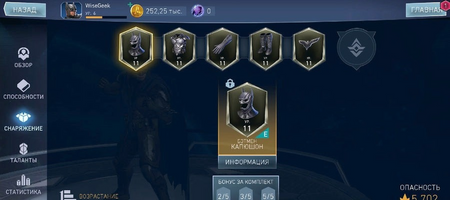 Теперь остановимся на снаряжении героя. Экипировка может значительно повысить характеристики героя. У каждого персонажа есть пять слотов под снаряжение, которое индивидуально для каждого. Внешний вид героя и его карта изменяются при использовании всех 5 элементов снаряжения.